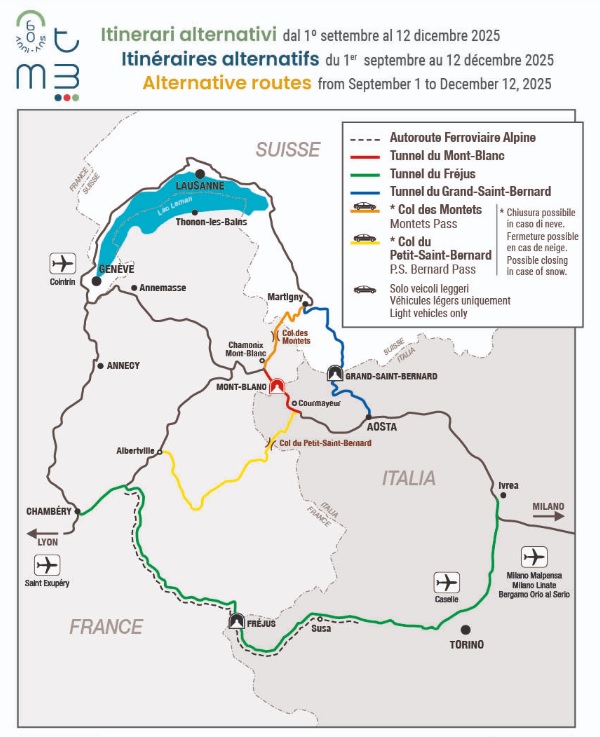 Este cierre del túnel de Mont Blanc se debe al proyecto de reconstrucción de dos secciones de su bóveda. Éstas serán las rutas alternativas: